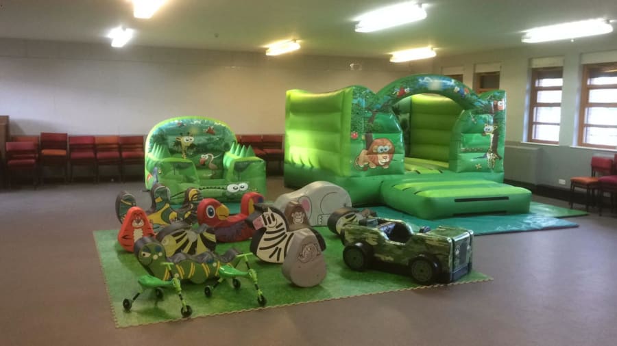 - This package has an age limit of 9 years for the Bouncy Castle, and 6 for the Soft Play and Ball pit