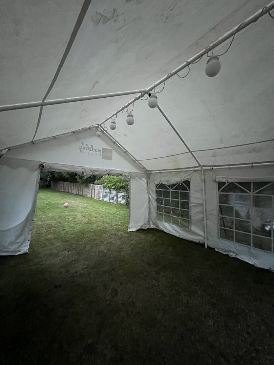 Great for garden parties and events. Have all of your guests sheltered from the unpredictable weather with the strong, completely sheltered Marquee! Can also come with or without sides, carpet and lighting.