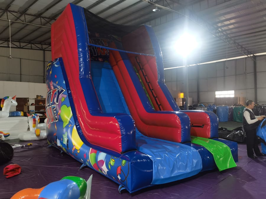 This 10ft platform slide is great for many different occasions. Due to its size we'd recommend it for all ages. The design and artwork on this bouncy slide is bright and vibrant, and the party time theme goes well with our party time ball pit and fun run. We can also make you a party package including this slide which will not only provide you with great savings and value for money, but also make the event you're planning extra special!