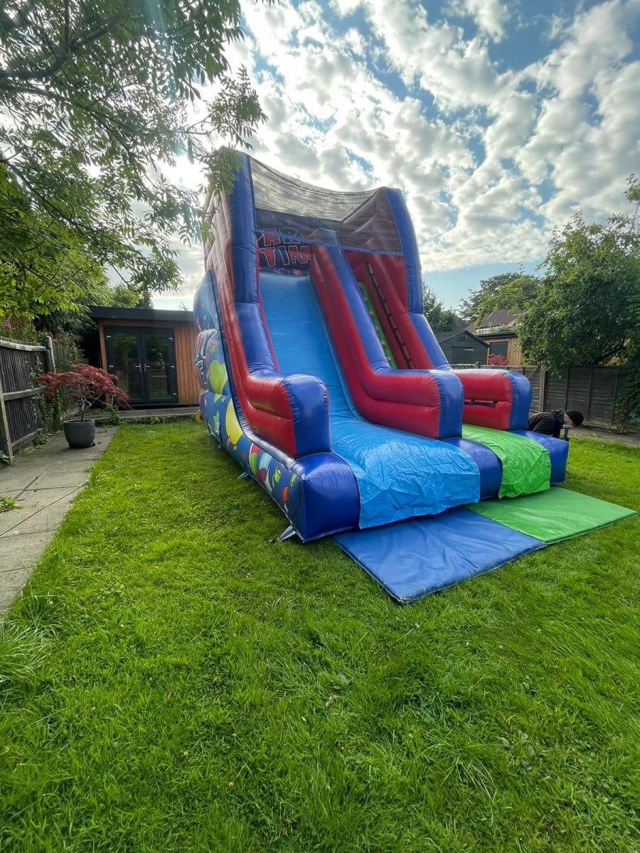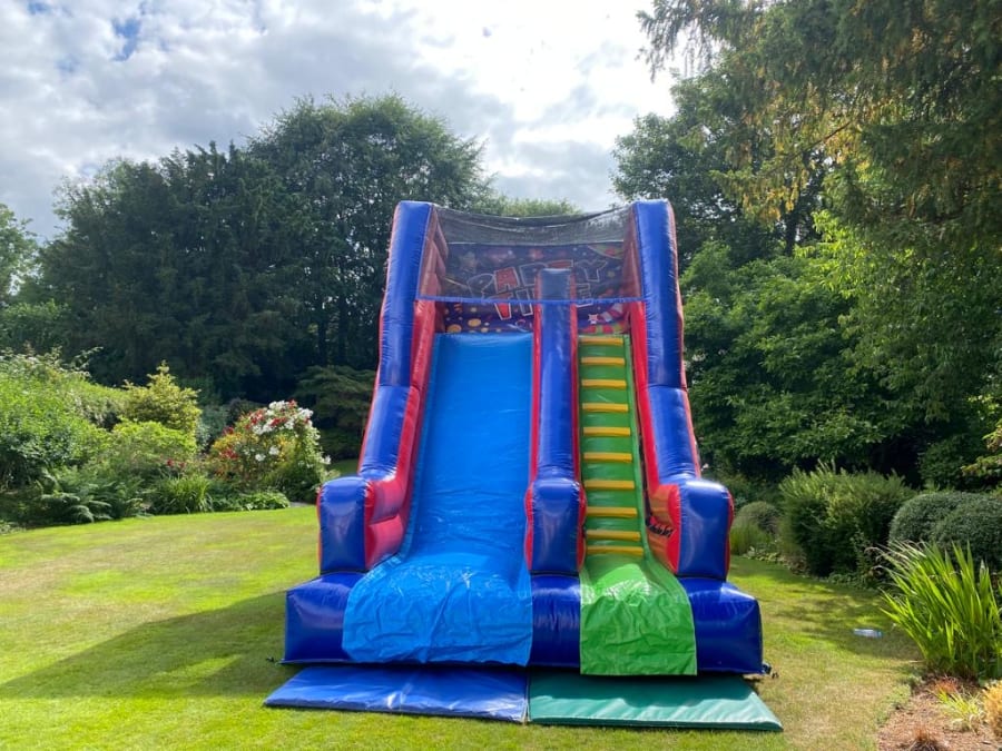 This 10ft platform slide is great for many different occasions. Due to its size we'd recommend it for all ages. The design and artwork on this bouncy slide is bright and vibrant, and the party time theme goes well with our party time ball pit and fun run. We can also make you a party package including this slide which will not only provide you with great savings and value for money, but also make the event you're planning extra special!