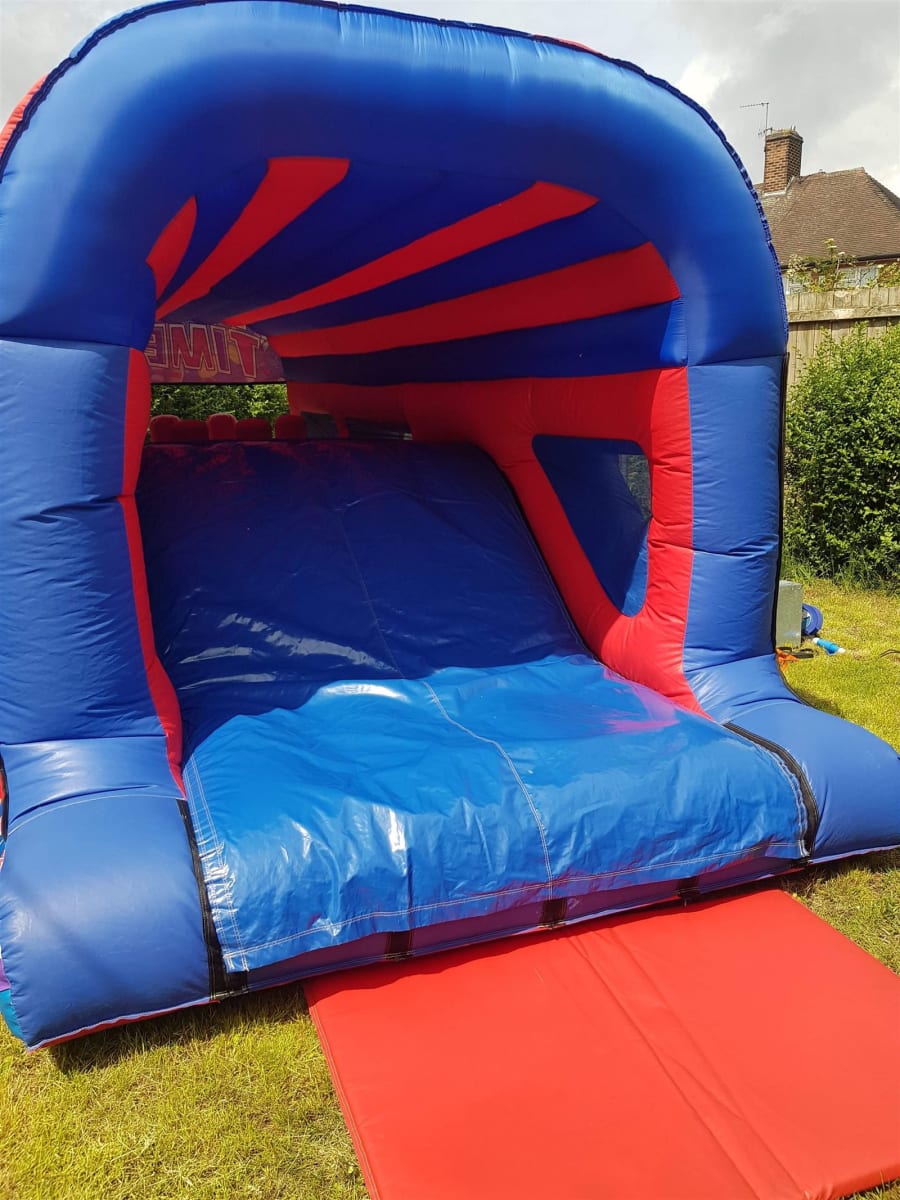 This is not your average Bouncy Castle! This is a fun run where children can race each other from one side to the other with obstacles and a slide in their way! This great unit is 25ft long and would look great in a big garden or in a nice hall!