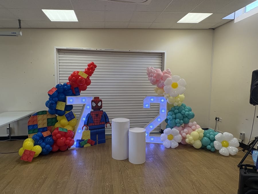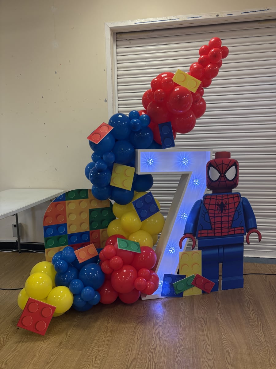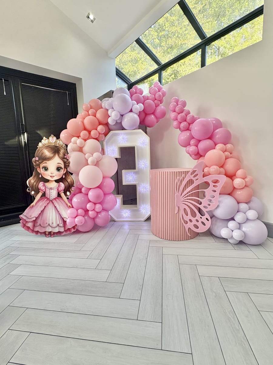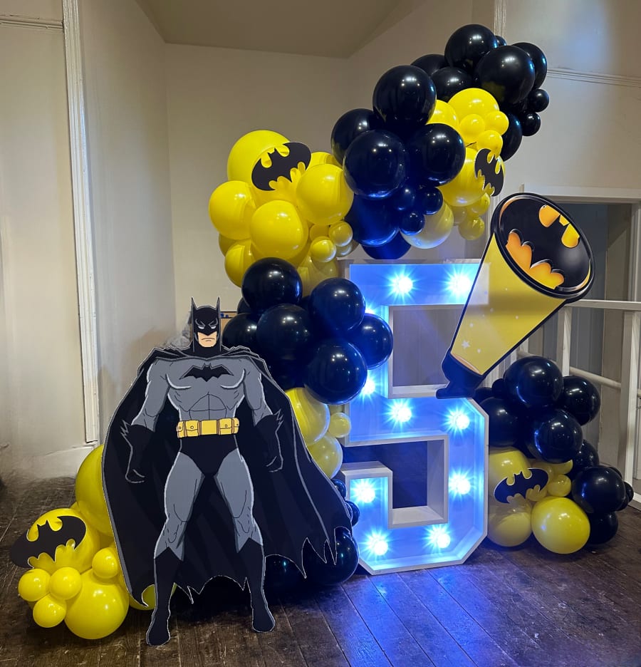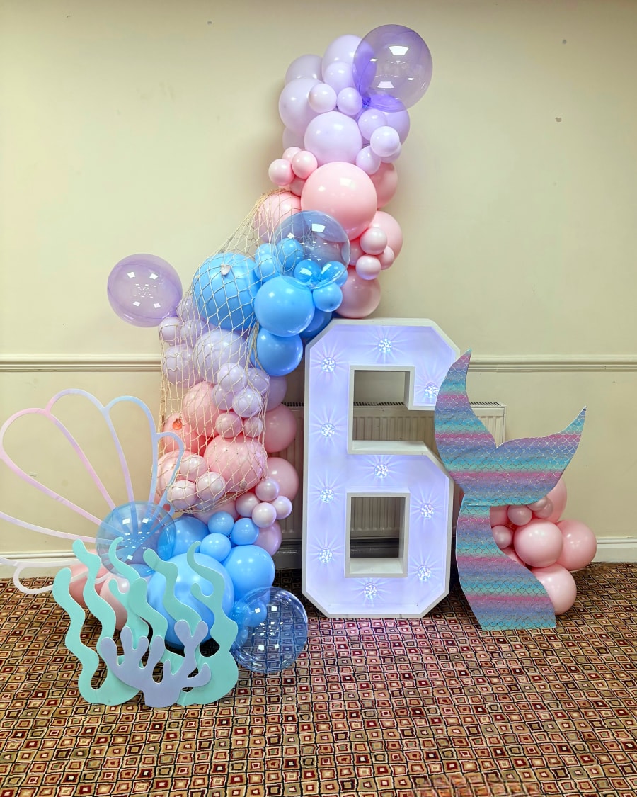 Themed balloon decoration with LED number