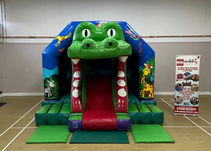 The quality of the artwork and the 3D Croc alone sets this inflatable apart from all of our others. This comes with a slide in the middle of the inflatable which adds even more fun for your guests. Due to this inflatable being jungle themed we can create many variations of themed packages for you.