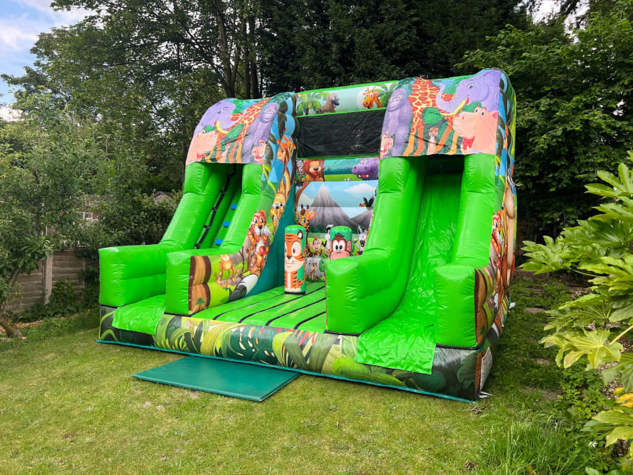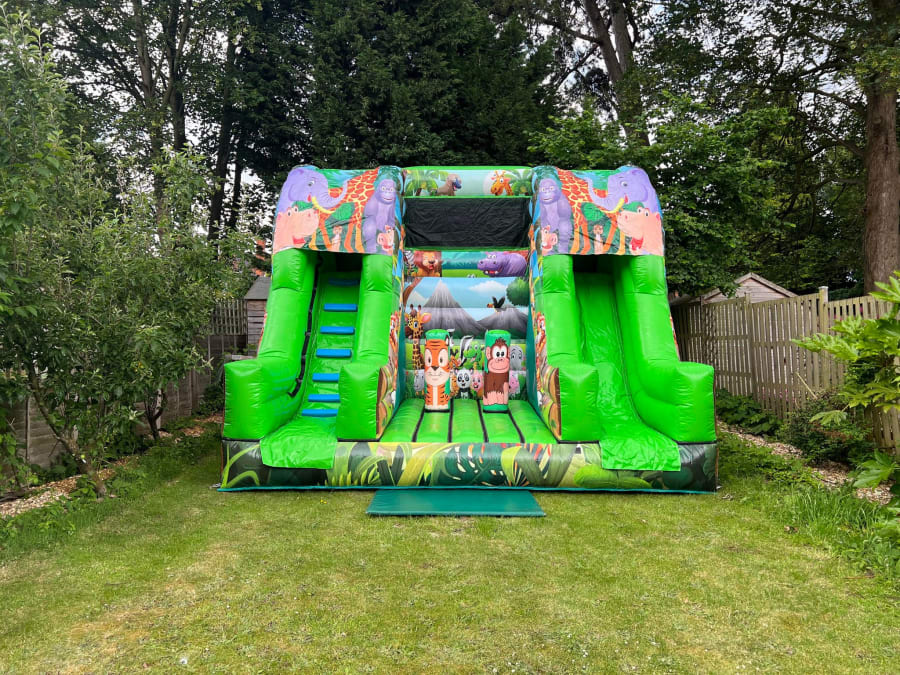 Take a look at our Jungle Activity Tunnel! We are the first in Birmingham to have this amazing bouncy inflatable. Children can climb up towards the tunnel, crawl through it, then tumble down the slide at the other end. There is also a cool area in the centre where children can bounce and play. This bouncy castle would definitely amaze your guests at the party as they probably have never seen anything like it! It also looks great in person.