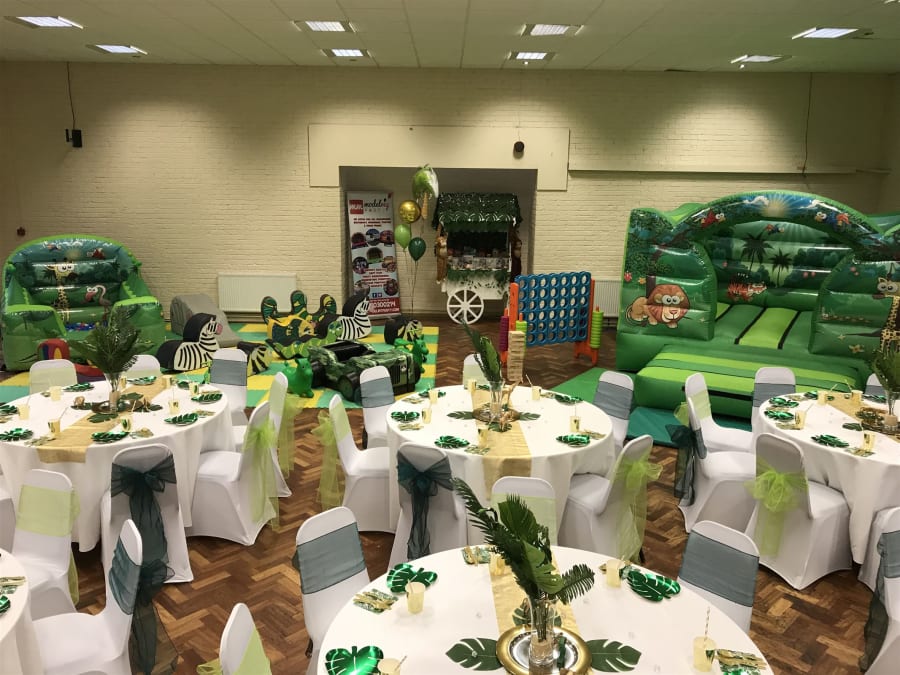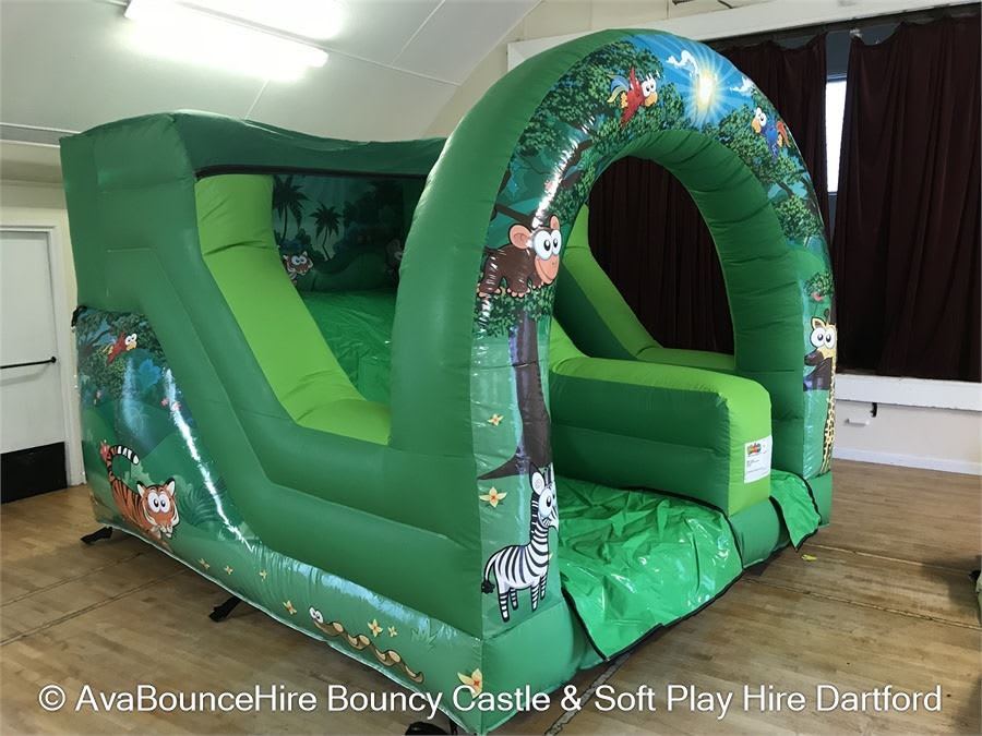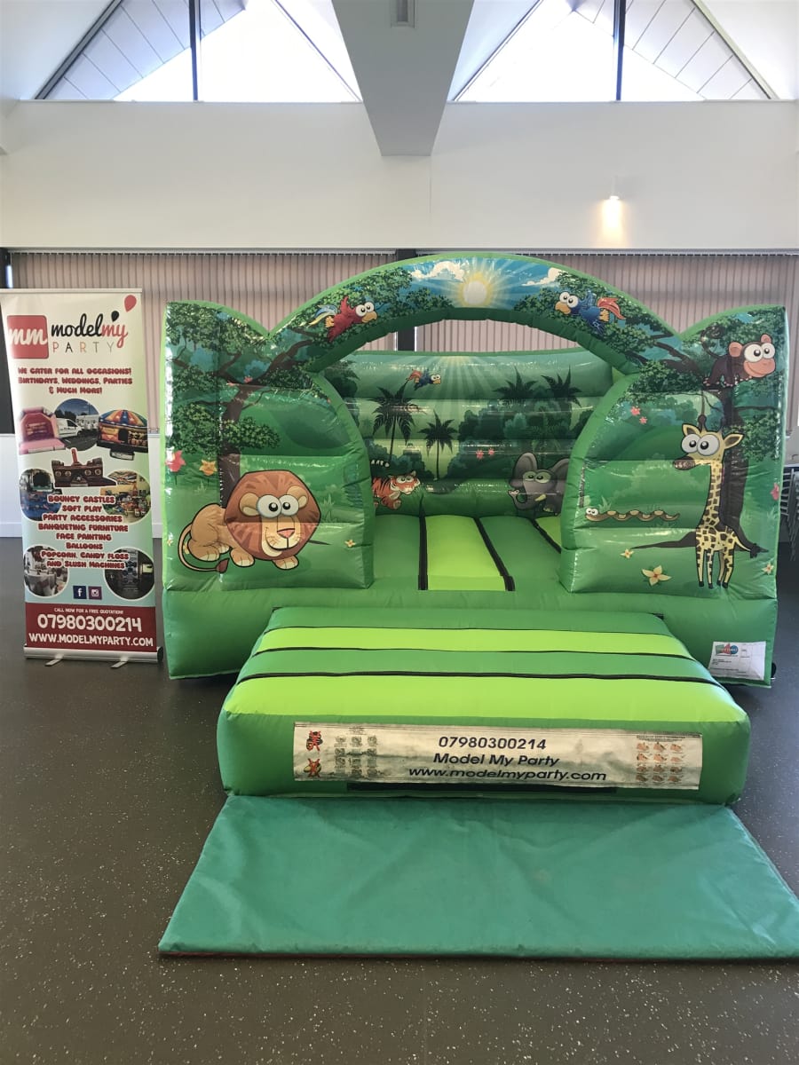 This Jungle Bouncy Castle is ideal for parties indoors as it is only 8.5ft tall. Can also be used outside and would be able to fit in most gardens. We also have a matching Inflatable Ball pit which is discounted when hired with this castle.