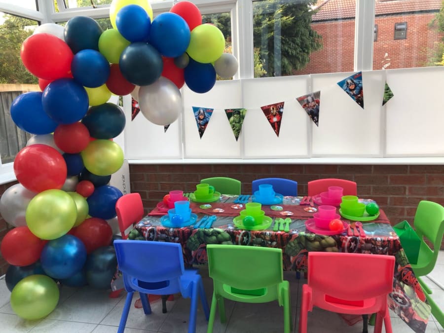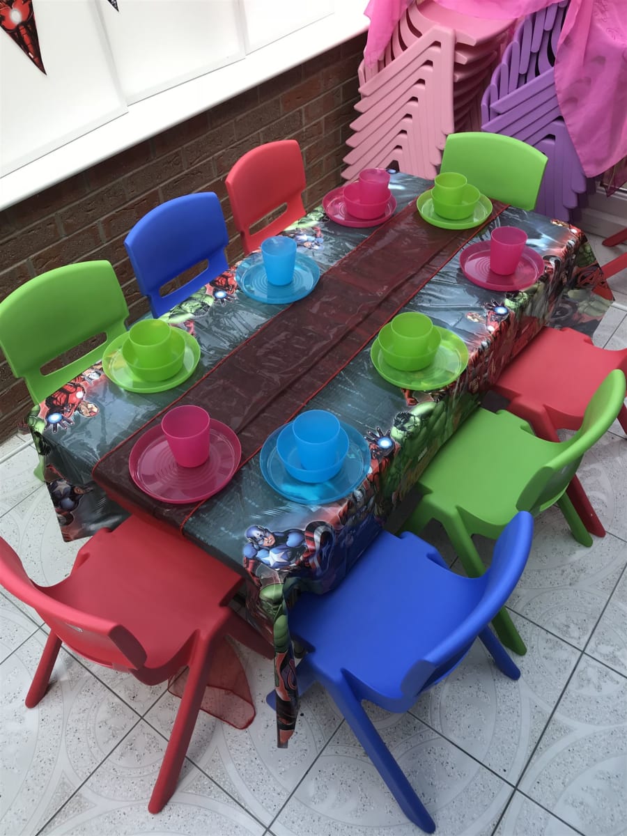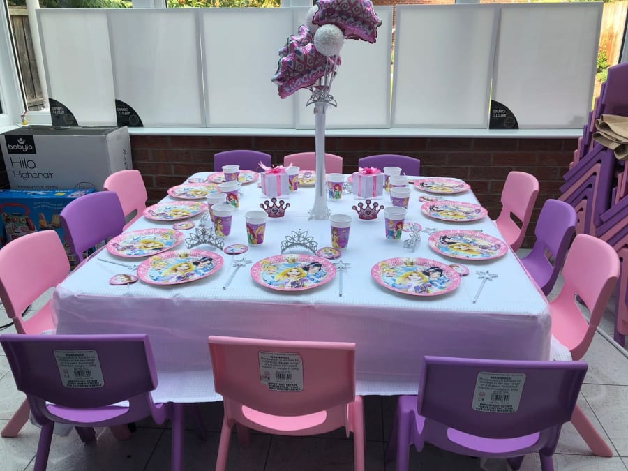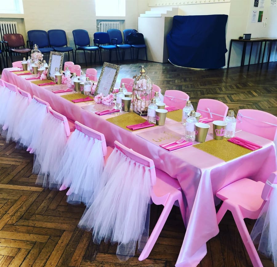 Kids chair hire Birmingham. These Chairs are great for small children. They can be set up and decorated how ever you like or just let us know the theme and colors and we can style the look for you! We can use balloons, tutu skirts and even masks to change the look.