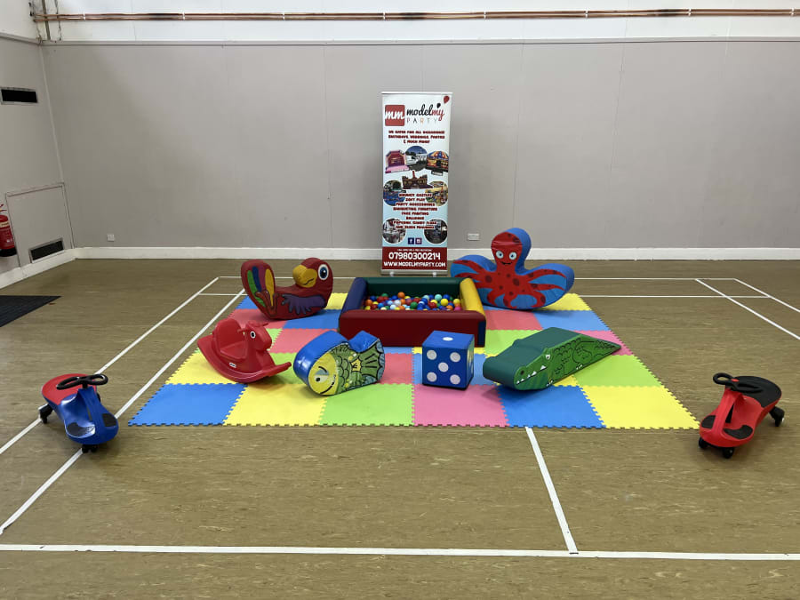 Ball Pit, 1 Funky Fish, 1 Crawler (worm/catapillar, crocodile), 1 Horse Hopper, 1 Horse Rocker, 2 Didi cars and 1 Dice