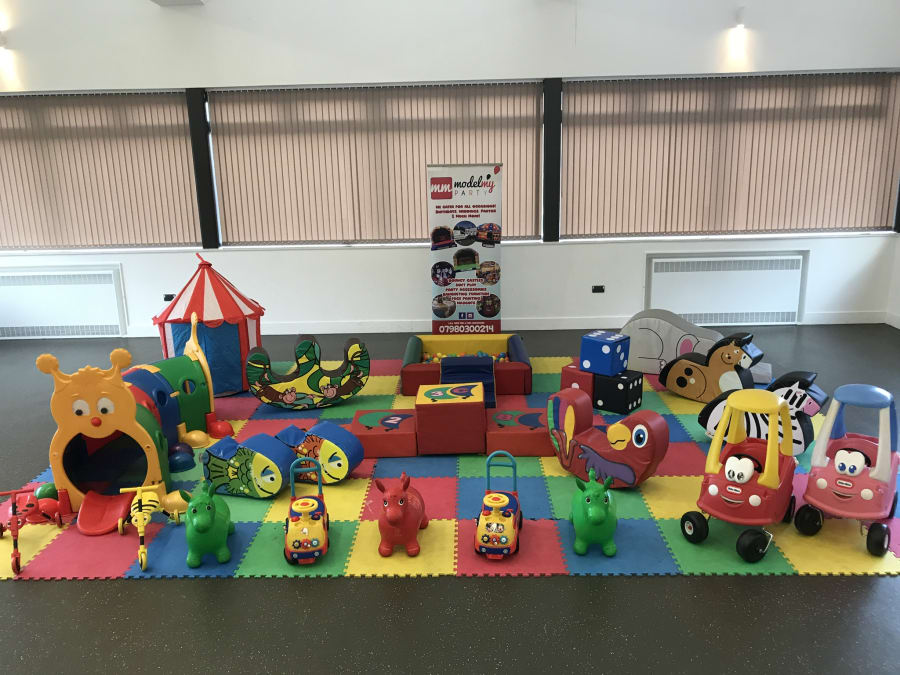 Ball Pit, 2 Funky Fish, 3 Horse Rocker (parrot, zebra), 1 Double Rocker (monkey/octopus), 3 Dice, 1 Big Top Circus Tent, 2 Didi cars, 2 Scuttlebugs, 2 Cozy Coupes, 1 Giant Gus Tunnel, 3 Plastic Horse rockets, 1 Giant Podium Steps, 1 Pop up Tent, 1 Big Lion Slide