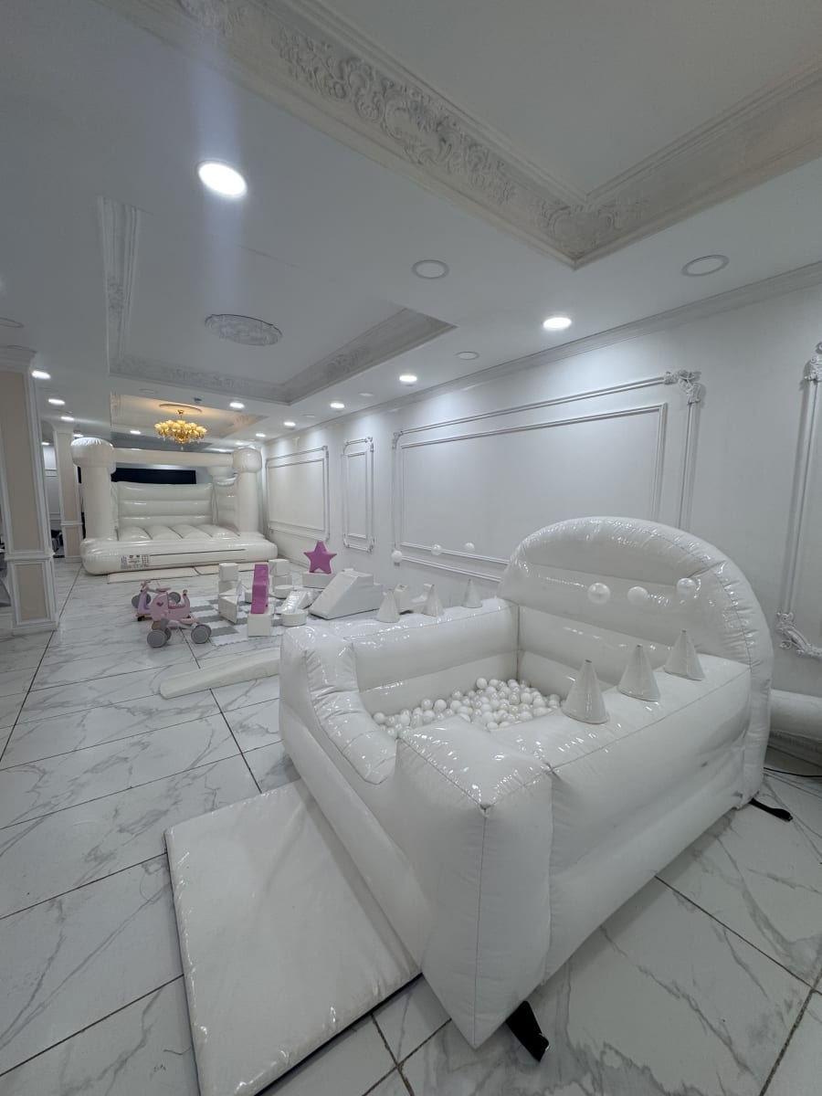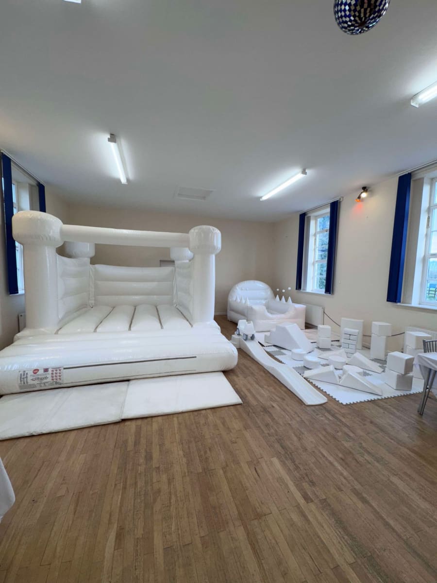 - White Bouncy Castle: Add a touch of elegance and fun with our pristine white bouncy castle, ideal for both indoor and outdoor events. It's a delightful attraction that will keep children entertained for hours.