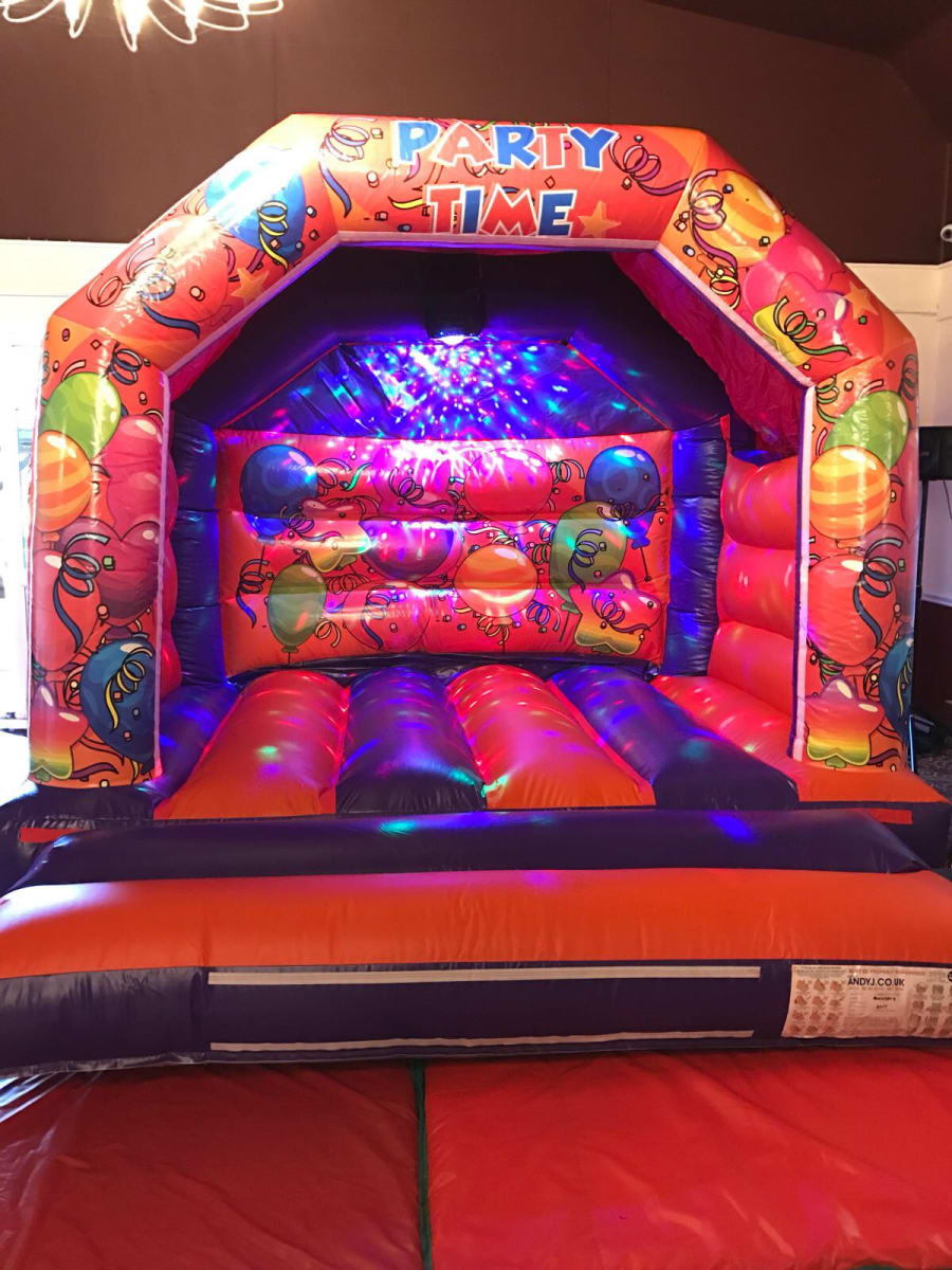 12ft by 12ft Orange Disco Bouncy Castle (including Speaker/Disco Lights - Up to age 15)